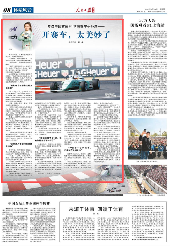 3月13日至15日,在2026年F1中国大奖赛期间,专为女性车手设立的F1学院赛(F1 Academy)拉开新赛季帷幕,中国车手师炜(文学与新闻传播学院新闻学专业2014届毕业生)以外卡车手的身份亮相上海国际赛车场,这也是她连续第二年参加该项赛事,《人民日报海外版》对其进行专访报道。