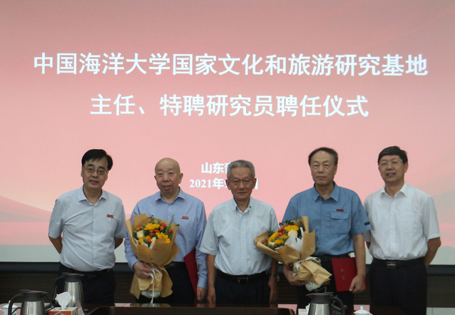 9月9日下午,中国海洋大学国家文化和旅游研究基地主任、特聘研究员聘任仪式在图书馆第一会议室举行,聘任卜键为基地主任、特聘研究员,聘任盖广生、刘国辉为基地特聘研究员。中国出版协会常务副理事长、原国家新闻出版总署副署长、国家新闻出版广电总局副局长邬书林,中国海洋大学副校长李巍然出席聘任仪式。